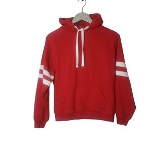 PENNANT Red and White Striped Sleeves Hoodie Sweatshirt