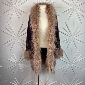 Color Merlot More of a Plum, Light Beige Fur & Gold Tone Embroidery