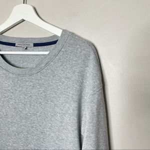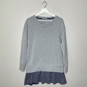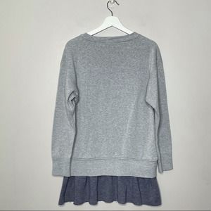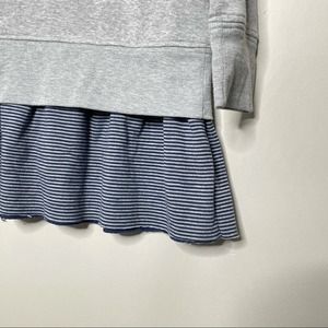 Details: Grey sweatshirt with faux layered look. Layered part is gray and navy stripes
