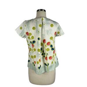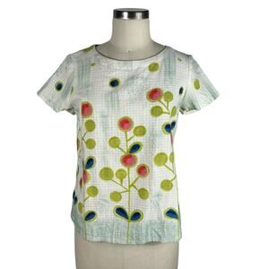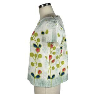 PEOPLE TREE Hand Crafted White Green Floral Textured Blouse Women's Medium