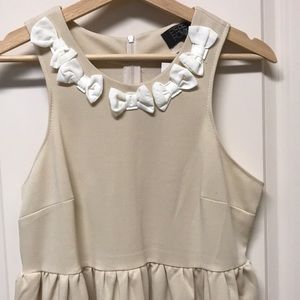 BNWT TANK DRESS WITH BOW DETAIL ALONG THE FRONT COLLAR. VERY CUTE FOR THE OFFICE! Color is a nice beige and has a slight elasticity along the waistline for extra comfort. There’s also slight ruching along waist adding a hint of elegance. I’m 5’ 9 and hem falls slightly at the knees.
