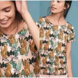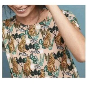 PEPALOVES Anthropologie Animal Print Sweater Fall Top Vintage Inspired