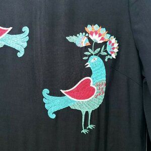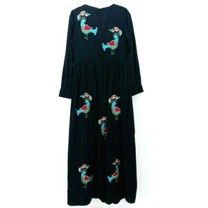PEPALOVES Birds Embroidered NWT Black Maxi Dress Long-size S