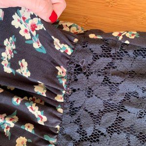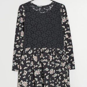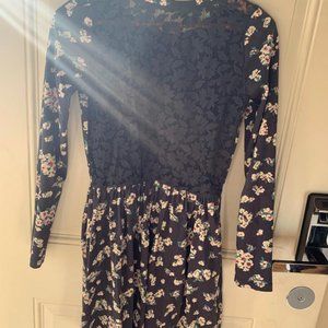 Pepe Jeans floral print dress. Two front pockets. Back detail very original. Cotton fabric with elastane, so it adapts and stretches. There is a small flaw in the lace at the back. It is frayed at the corner. Please see all photos.