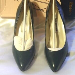 brand new in box Pepe Jimenez Patton green leather heels with leather bottom size 7.5 m