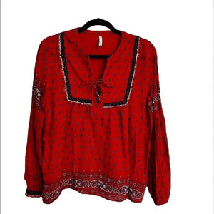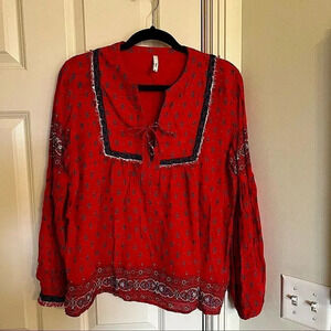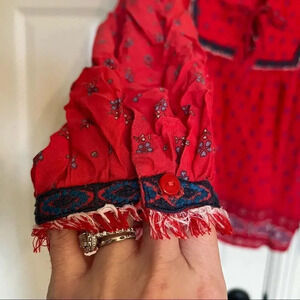PEPE Jeans red boho long sleeve fringe and embroidered blouse size X-Large