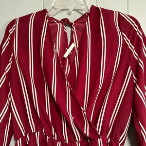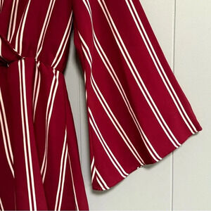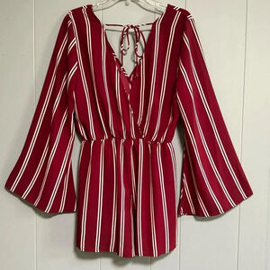 PEPPERMENT Vneck Long Flare Sleeves Back Tie Burgundy Stripe Short Romper Size M