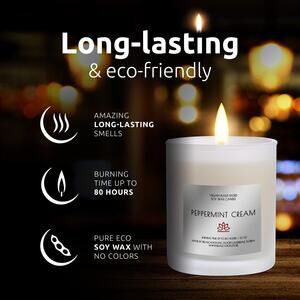 Peppermint Cream Soy Wax Candle in Glass Jar – Clean Burn up to 80 hours 10 oz