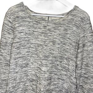 PER SE SPORT Blouse Tweed Long Sleeve Boat Neck Zipper Back Womens M White Black