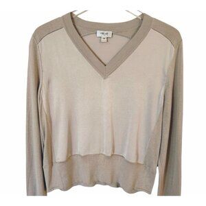 Per Se V-Neck Pullover Sweater with Fabric Front