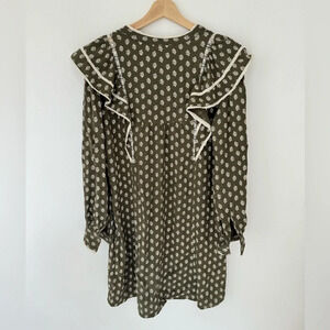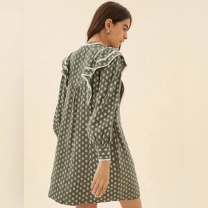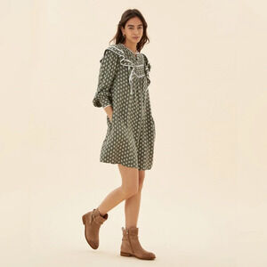 Bring a little romance to your wardrobe with this leaf-motif dress from Per Una. Cut in a regular fit from drapey lightweight fabric, it has a flowy shift silhouette and falls to the knee. Ruffle detailing on the shoulders, lace inserts and blouson sleeves create a whimsical feel. Double-button cuffs complete the design. Per Una: stylish designs crafted with carefully considered details and feminine flourishes.