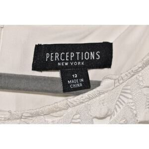 PERCEPTIONS NEW YORK NEW $99 Long Flared Sleeve Lace Shift Dress White Size 12