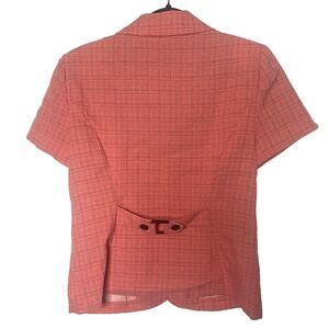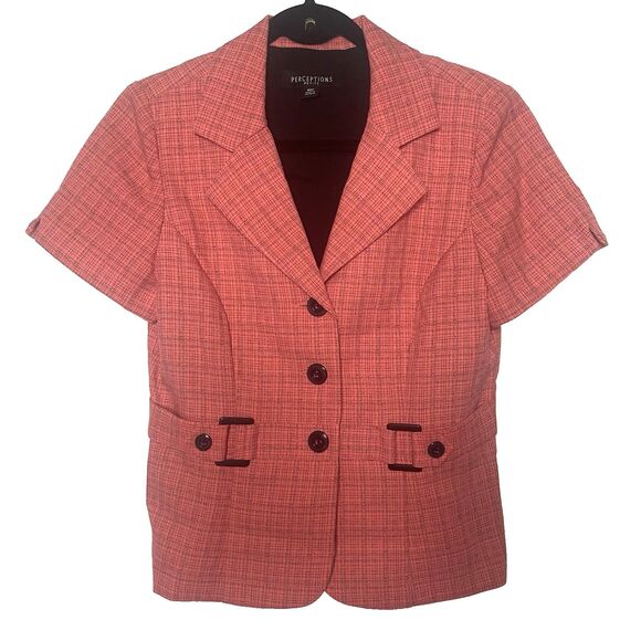 PERCEPTIONS PETITE Blouse Plaid Fitted Waist Tab Short Sleeve Womens 10P Peach