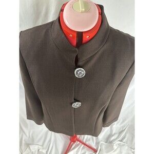 PERCEPTIONS PETITE Size 8 8P Brown 2 Button Blazer Shoulder Pads Long Sleeve