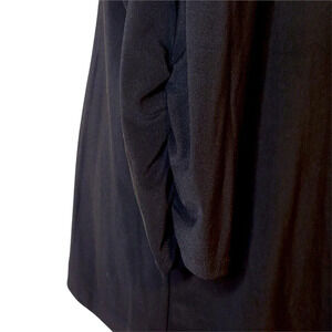 This is a solid black lightweight shiny knit cardigan in Excellent Preowned Condition.