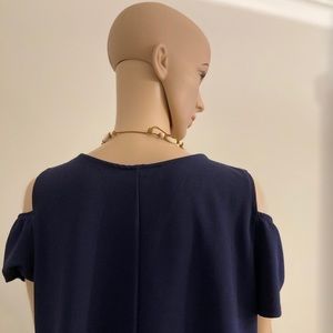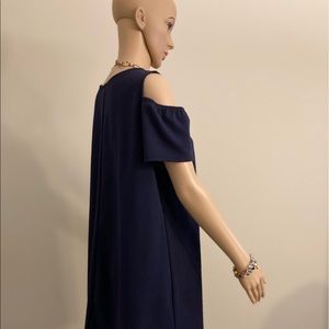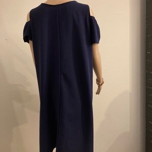 Perceptions navy dress. Size 14. Loose fitting and very comfy. Dress can be worn casually or on a romantic date. Polyester. Bottom total 58”. 35” long. Excellent shape.