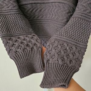 -Long sleeves pull over cable knit textured sweater made of 100% wool