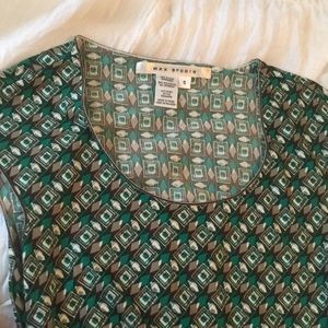 Perfect condition sleeveless dress with thick straps. Worn once. Green, beige, and white pattern with a cute tie on the side. Perfect for work, graduations, weddings, or other events. Make an offer!