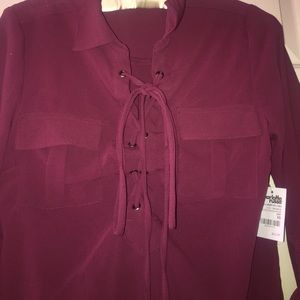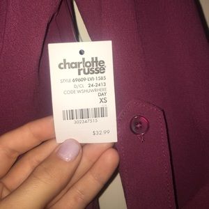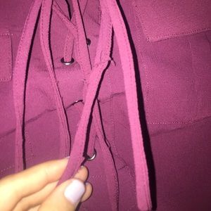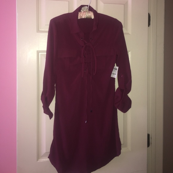 Maroon causal dress, not too short comes up to above knees on 4'11" person. Small tearing in strings seems as if seam is coming loose. Comes from a smoke free home.