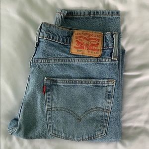 Medium wash levi’s straight leg, 16 inch waist. Marked as 32 but only a little bit big on me and I’m a 27. Perfect condition!🤍