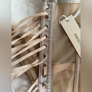 PERFECT CORSET NY Satin Corset Beige Size Medium Lace Up Back Girdle NWT