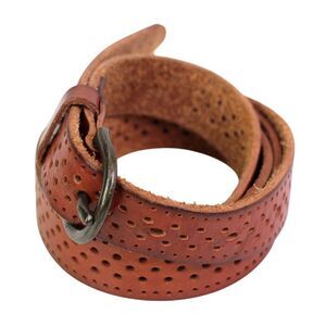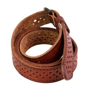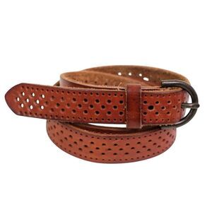 PERFORATED BROWN REAL LEATHER 7/8"Wd SKINNY CASUAL DRESS WOMEN'S BELT Sz XL (84T