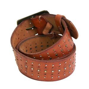 PERFORATED BROWN REAL LEATHER 1 5/8"Wd STUDS CASUAL DRESS WOMEN'S BELT Sz S (F34
