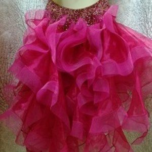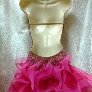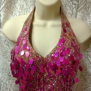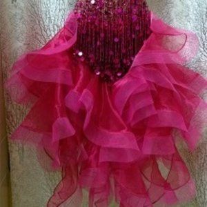 HOT PINK BEADED FRINGE WITH HIGH-LOW SKIRT!