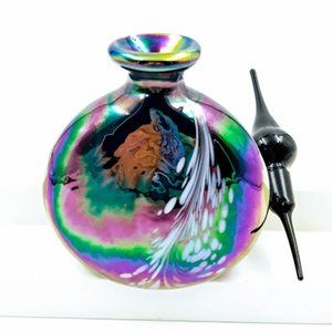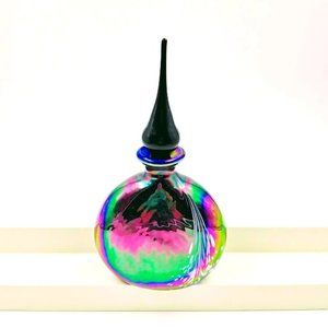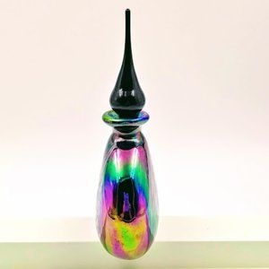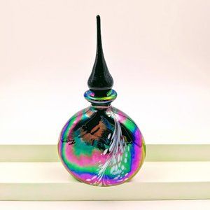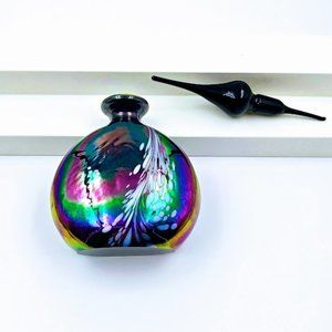 PERFUME BOTTLE/DECANTER* HANDBLOWN ART GLASS* IRIDESCENT COBAL BLUE*STUNNING*