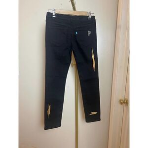 PERI.A Black Gold Digger Embroidered Stretch Denim Jeans Women Sz. 25