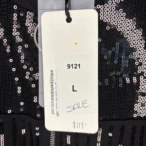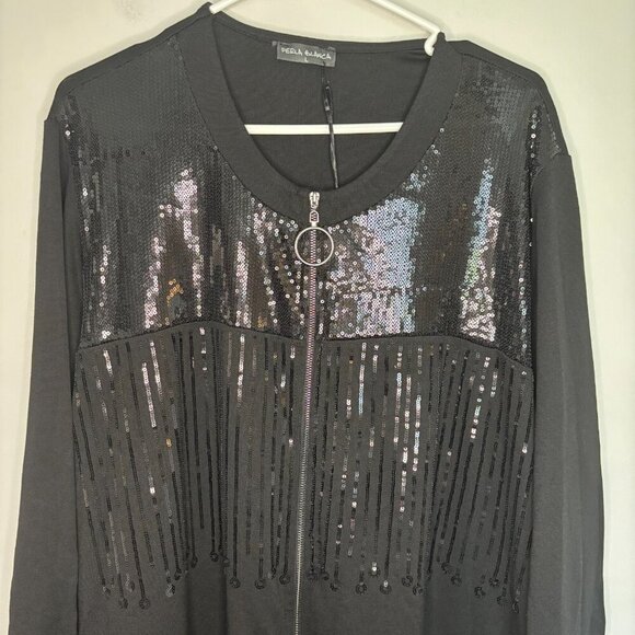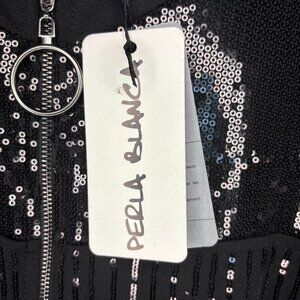 PERLA BLANCA NEW Dress Women Large Black Sequin Long Sleeve Full Zip Stretch