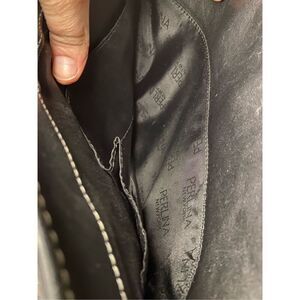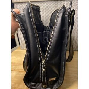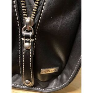 PERLINA BLACK GENUINE LEATHER THREE COMPARTMENTS BUSINESS TOTE SHOULDER BAG
