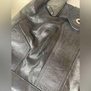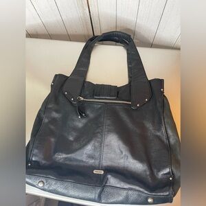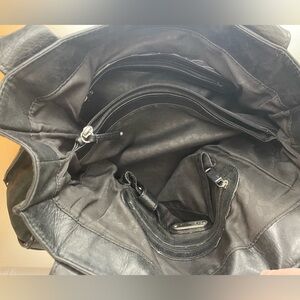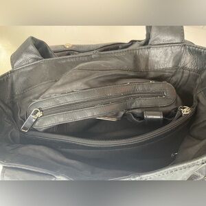 PERLINA Large Black Soft Leather Suede Tote Satchel Purse Bag Top Handle