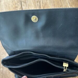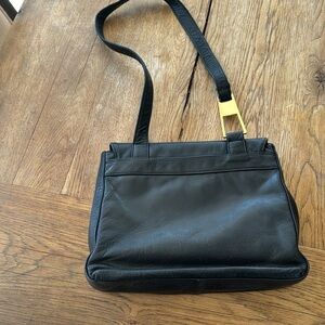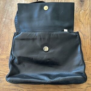 PERLINA NEW YORK Black Genuine Leather Flap Pocket Shoulder Bag Purse