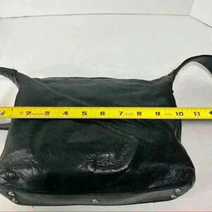 Great condition , hardly used so it’s ready for new homes. All measurement in photos. Crafted from genuine black leather, this medium-sized bag features a solid pattern and a magnetic, nickel hardware, zipper, and large outside organizer on the back for added convenience. The bag also comes with a shoulder strap made of leather that can be adjusted to your desired length.