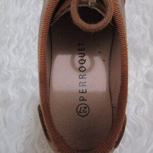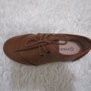 PERROQUET SHOES Boys Wingtip Oxford Leather laced shoes luggage New In Box Sz 27