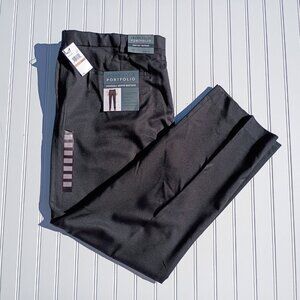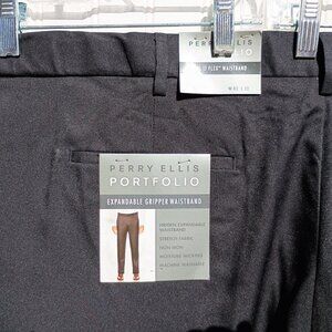 PERRY ELLIS Dress Pants Mens 42 x 32 Black Slacks Folio Flex Waistband Portfolio