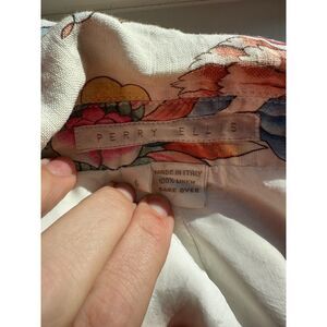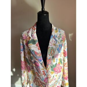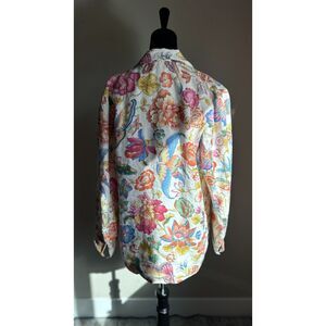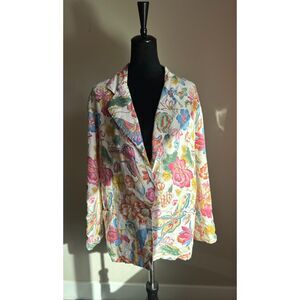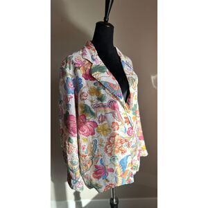 PERRY ELLIS Floral Print Linen Single Breasted Long Line Blazer Size 6