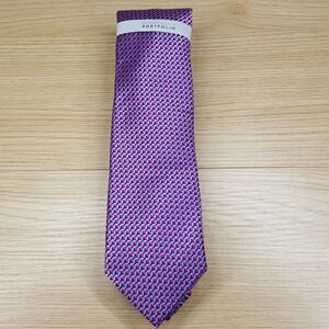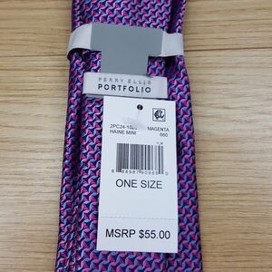PERRY ELLIS Mens Neck Tie Magenta Blue Chevron Geo Pointed Classic
