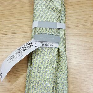 PERRY ELLIS Mens Neck Tie Yellow Blue Zig Zag Chevron Pointed Classic