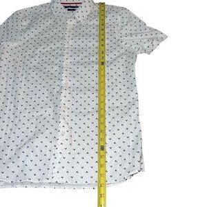 PERRY ELLIS Men’s White, Blue, & Red Patterned Short Sleeve Button Up Size M