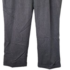 Elegant PERRY ELLIS PORTFOLIO dress pants. Charcoal gray color, pleated front, and cuffed hem. The pants have a waist size of 40 inches and an inseam of 32 inches (with an extra inch under turn). The pants have a front zipper , button , hook and loop closure, and slash pockets. They are made of 100% polyester and are machine washable. Perfect for weddings, parties, business meetings, and other formal occasions, these pants are a classic addition to any wardrobe.