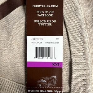 PERRY ELLIS PRINCIPLES V NECK SWEATER XXL SANDBAR HEATHER
