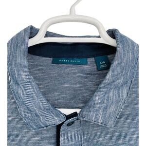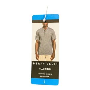 PERRY ELLIS Polo Shirt Men's Large Blue Button Stretch Short Sleeve Wicking NWT