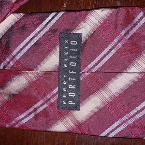 This #PerryEllis Portfolio Tie is a timeless classic. 100% Silk. Burgundy with silver accents. Made in Costa Rico. In great, gently-used condition.