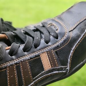 PERRY ELLIS Portfolio LEATHER Sneakers Shoes (4 Leather STRIPES) Men SIZE 9 WIDE