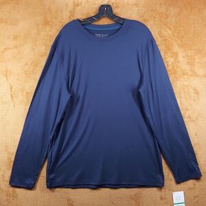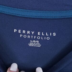 PERRY ELLIS Shirt Mens Large Navy Pullover Crew Deluxe Touch Soft Comfort