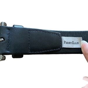 PERRY ELLIS Black Leather Belt Waist 34 Size 85