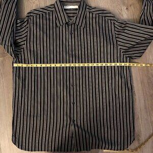 PERRY ELLIS-Brown Stripes 100% Cotton button front Mens Dress Shirt Size X-LARGE