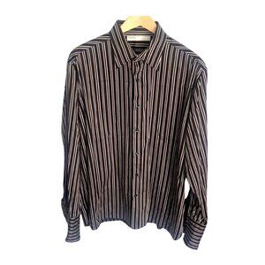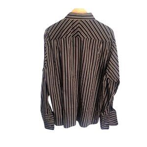 The PERRY ELLIS-Brown Stripes Men's Dress Shirt is a style statement. Crafted from 100% cotton, it features a button-front design. Perfect for men who prefer comfort with style. Size: XL.